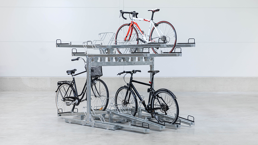 Vårt tvåvåningcykelställ är en smart och flexibel lösning. Det modulära systemet gör att du kan anpassa och utöka ditt cykelställ över tid, beroende på behov och utrymme. Välj mellan olika skenlösningar för att skapa den bästa parkeringen för just din verksamhet: