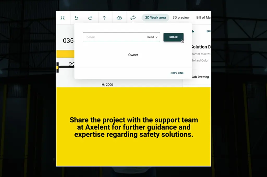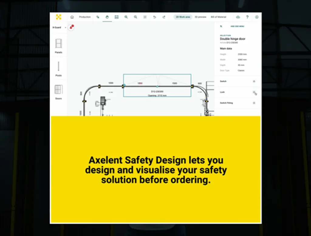 Axelent Safety Design är vår internutvecklade, användarvänliga ritapplikation. Safety Design gör det möjligt för dig som kund att få en snabb layout-ritning som visar de produkter som behövs för ditt projekt. Oavsett om du arbetar med maskinsäkerhet eller lagerskydd, har Safety Design det du behöver. I vår omfattande katalog kan du hitta allt från maskinskydd till skyddsräcken för fotgängare.